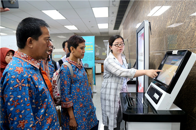 会谈结束后,墨邱布安南大学代表团参观了图书馆,亲自体验了系统检索功能,并对图书馆方便的借还书系统操作表示赞扬。