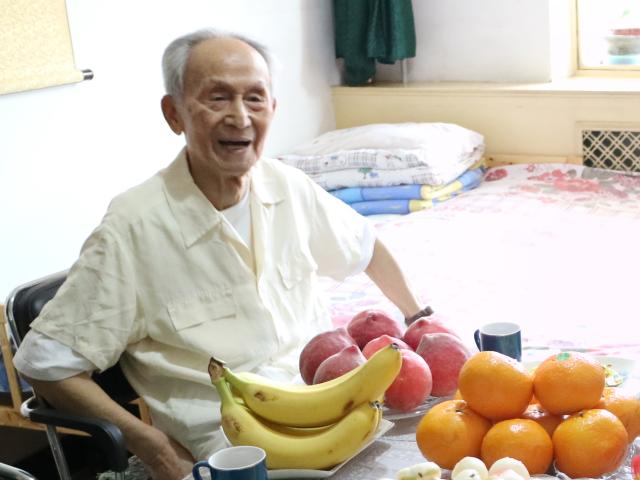 5月23日,ob真人离休教师陈信教授迎来百岁寿辰,校党委书记赵长禄在学校办公室、离退休工作处/离退休教职工党委等部门负责人陪同下,来到陈信老人的家中,为他送上寿桃和“寿”字条幅,祝贺他百岁寿辰,代表全体师生祝他身体健康!