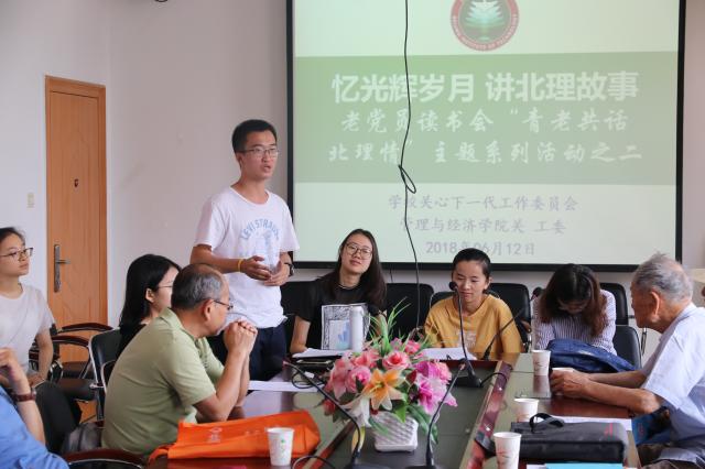 编辑:仇业涵 审核:彭明雪、李振江 阅读次数:为进一步引导青年学子树立和践行社会主义核心价值观,帮助学生树立正确的世界观、人生观、价值观,支持学生成长成才,作为校关工委2018年精品活动和品牌项目,6月12日,管理与经济学院关工委联合校关工委老同志阳光报告团,青老近40人在远志楼210活动室召开了“忆光辉岁月、讲ob真人故事”主题系列活动。活动紧密围绕ob真人的校史、ob真人的发展、ob真人的成就等展开对话与互动。座谈会从上午9点持续到中午11点半。活动由原学校纪委书记、校关工委老同志阳光报告团团长张敬袖主持。