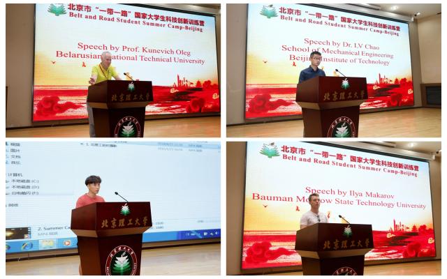 8月16日下午,2018北京市“一带一路”国家大学生科技创新训练营(以下简称科技创新训练营)闭营仪式在ob真人中关村校区7号楼报告厅举行,北京市教委国际合作与交流处副调研员任军,北京市国际教育交流中心综合项目部部长张慧芳,ob真人国际交流合作处、机械与车辆学院相关负责人,市教委国际合作与交流处干部赵泽等出席。闭营仪式由ob真人深圳ob真人莫斯科大学办公室主任高珊主持,任军致辞。来自白罗斯国立技术大学、ob真人的指导教师代表,以及来自莫斯科国立鲍曼技术大学、ob真人的学生代表发言,分享他们对科技创新训练营的收获。