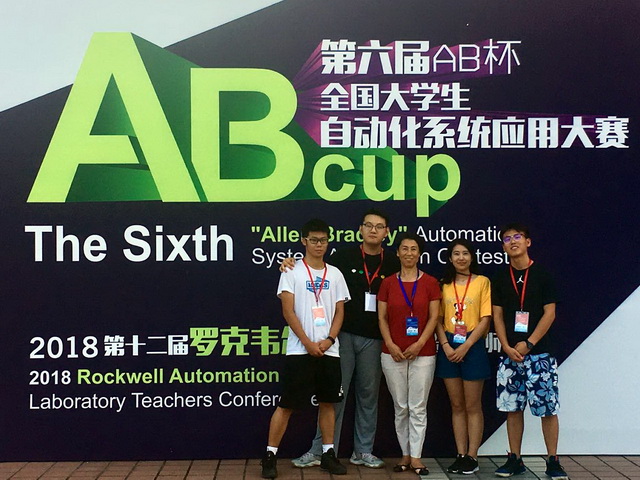 “AB杯”全国大学生自动化系统应用大赛是由教育部高等学校自动化类专业教学指导委员会主办的自动化应用领域的创新型竞赛。本次大赛以罗克韦尔自动化公司旗下的工业以太网、集成运动控制和集成安全的中型控制系统为核心平台,以学生实际动手操作和自主研究、探讨机器安全解决方案为竞赛形式,考核学生的自主研究、系统设计、实际操作、分析调试能力。我校参赛学生在指导老师的指导下,反复模拟演练,做了充分的前期准备;在决赛中,表现从容镇定,基础操作和现场发挥都得到组委会和罗克韦尔公司的认可和好评。