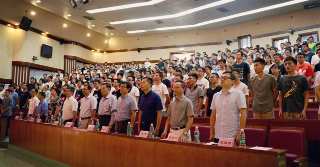 典礼伊始,全体师生起立,奏唱中华人民共和国国歌。在雄浑激昂的国歌声中,全体研究生饱含热情,斗志激昂。