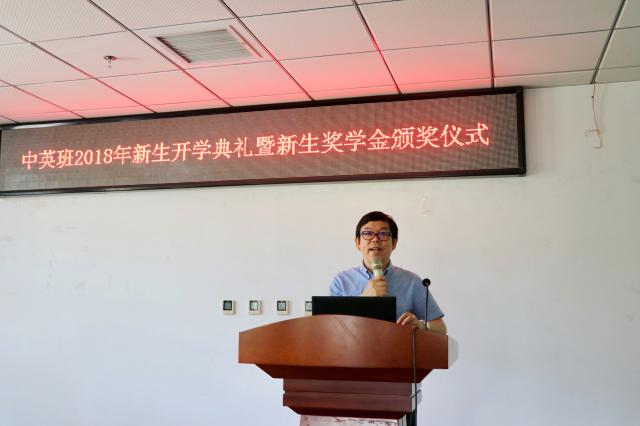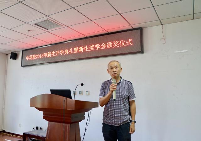 编辑:曹安琪 审核:司黎明 阅读次数:9月6日,ob真人竞猜与英国中央兰开夏大学合作举办电子工程学士学位教育项目(简称“电子工程中英班”)2018年新生开学典礼暨奖学金颁奖仪式在中关村校区信息科学实验楼202报告厅顺利举行。出席开学典礼暨颁奖仪式的有信息与电子学院院长、电子工程中英班项目主管领导安建平,信息与电子学院副院长、中英班项目分管领导司黎明,信息与电子学院教授、教育督导顾问沈庭芝,信息与电子学院教授、课程负责人刘家康,项目管理人员,班主任以及全体新生和部分家长。开学典礼由孙佳伟老师主持。
