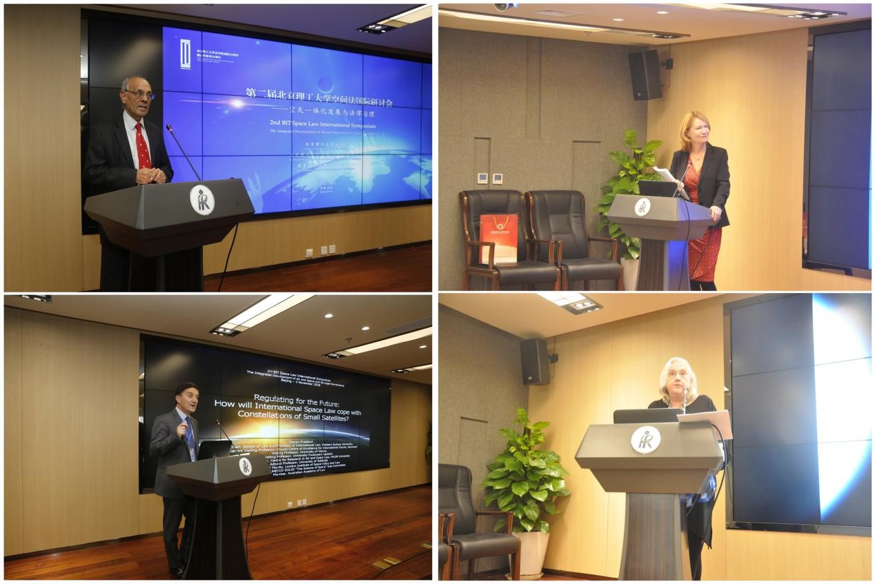 加拿大麦吉尔大学航空与空间法研究所教授、MILAMOS手册主编Prof. Ram Jakhu,中国航天系统科学与工程研究院院长薛惠锋,澳大利亚西悉尼大学法学院院长Prof. Steven Freeland,中国航天科技国际交流中心副主任、中国空间法学会秘书长张振军作了题为“全球空间治理面临的挑战”“开启星际命运共同体的伟大征途,走好法治外空大系统的人间正道”“未来的法律规范:国际空间法将如何应对小卫星星座?”和“1979年《月球协定》与外空采矿活动国际治理”的主旨报告。分别对全球空间治理的起源及其面临的挑战、构建“星际命运共同体”及中国的应对、小卫星星座建设中的空间法问题及国家责任问题、外空采矿相关法律规范问题进行了全面探讨。主旨报告内容精彩、观点精辟,受到广泛好评。