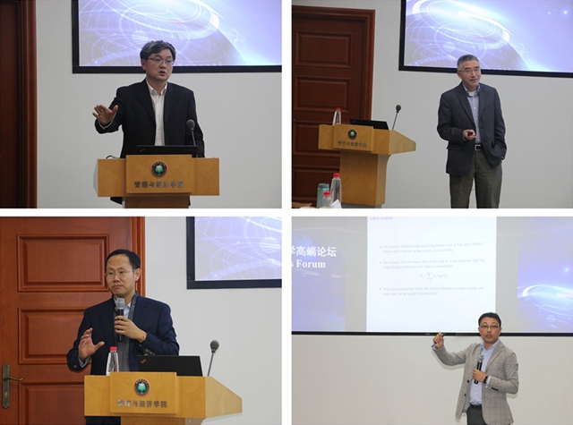 此外,管理与经济学院青年学者曹云飞博士和郝宇副教授也分别汇报了自己的研究工作,与会专家给予了中肯的点评。论坛举办期间,参会的老师和同学们与专家在专业领域及学术研究、人才培养等问题进行了深入的交流。通过此次论坛,搭建起我校经济学领域与国内外交流的高端平台,将进一步提升我校师生在经济学领域的发展和影响力。