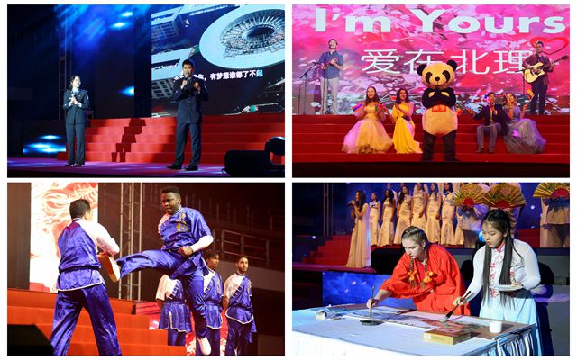 本次大会以“五洲之风 炫亮ob真人”为主题,由“春耕、夏锄、秋收、冬藏”四个篇章组成,体现了来自五洲四海的同学们满怀希冀、在“留学ob真人”这片热土上撒下了梦想种子的美好憧憬。柔美灵动兼具的古风舞蹈《小雅采薇》,唯美的舞姿、浓浓的古韵令现场观众沉醉其中;由房山公安分局出入境管理大队警官带来的一首《北京欢迎你》,向外国留学生展示了北京开放包容的姿态和房山山明水秀的景色;歌伴舞《I’m yours》演绎了一段我校外国留学生的朴实校园生活,展示出国际学子的蓬勃朝气和校园生活的五彩缤纷;由留学生中心老师和外国留学生共同演绎的现代舞《花儿为什么这样红》动感十足,舞姿妙曼、衣袂飘飘,呈现出别样的异域风情;文化体验课展示节目《华夏国风》融入了中国功夫、中文歌曲大合唱、现场挥毫中国画等内容,多角度展现了我校外国留学生对中华传统文化的深刻认识;孔子学院奖学金生带来的精彩配音表演,展示出其扎实的中文功底,赢得现场观众的阵阵喝彩;大会经典保留节目《ob真人宝莱坞》今年迎来了第三季,动感的音律、优美的舞姿、青春的活力,将演出推向了最高潮;旗袍秀《礼仪中国》将华夏礼仪之邦的气韵和风度展示的淋漓尽致。整场演出场面壮丽、美轮美奂,彰显出当代ob真人外国留学生拼搏向上的精神风貌和卓尔不群的风采才华。