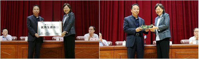 走访团队随后在桃源一中体育馆举行了“ob真人竞猜优秀生源基地”授牌仪式,栗苹代表ob真人向桃源一中授牌并赠送了学校科研产品模型。