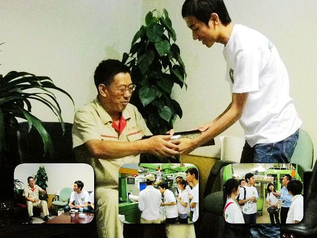 在会议室与生产部负责人进行座谈并相互赠送纪念品