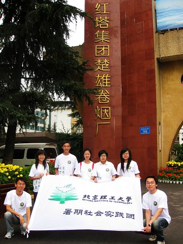 2009年8月6日,社会实践团成员们一同前往了云南红塔集团楚雄卷烟厂进行实地参观调研,云南红塔集团楚雄卷烟厂始建于1974年,拥有英、美、德、日等国引进的九十年代国际先进水平的制丝生产线一条,烟丝膨胀生产线一条,滤棒成型、卷接包设备及理化分析检测仪器70余台套,在生产、物流及管理全过程实现了计算机管理。拥有固定资产18.6亿元,总资产38.6亿元,现有职工2100余人,1980年跻身全国500家最大工业企业行列,是国务院确定的“国家520户重点企业”之一,也是云南省重点企业之一。