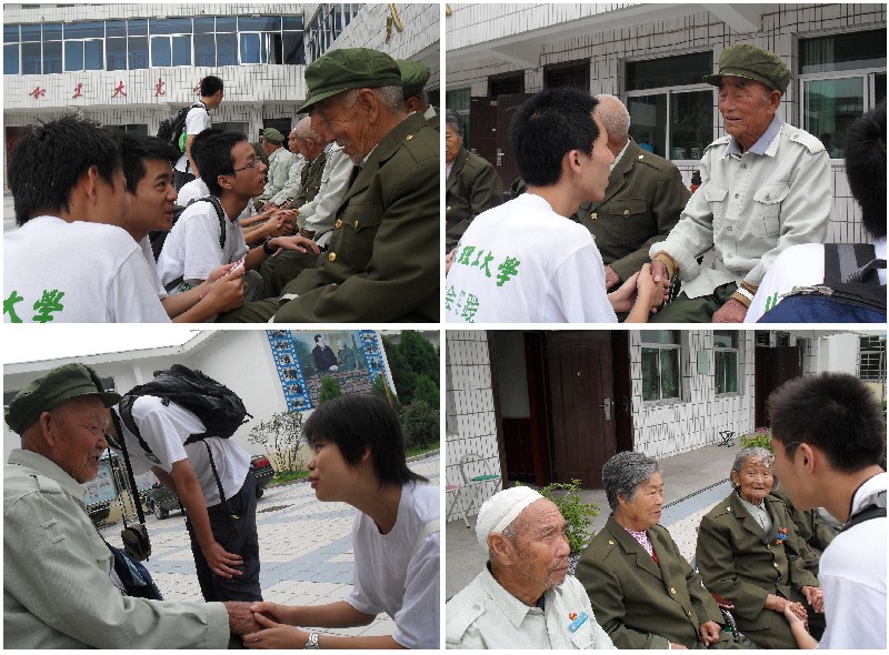 对于我们的到来 ,八一敬老院的老人们给予热情的欢迎,并与我们亲切交流。他们或讲述自己早年参军入伍的曲折,或回忆战火纷飞年代的艰辛;或感叹今日生活之幸福,或憧憬明日未来之璀璨。实践团成员或聆听,或记录,或请教,或思索。在老人们身上,我们看到灼灼的延安精神绽放光芒。老人们也无一不表达他们对我们80、90后青年成才以建设祖国辉煌明天的良好祈愿。