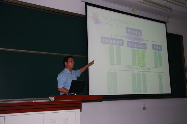 9月1日,我校开始了09年本科生迎新工作。宇航学院于1日下午5点在良乡校区理科教学楼召开了09级本科级新生及家长见面会。会议由我院分党委书记于倩主持,出席本次会议的有我院院长胡更开,副院长唐胜景,副院长王宁飞,09级新生辅导员、各班主任、09级新生及家长。