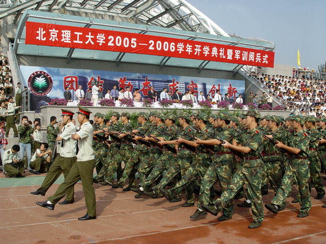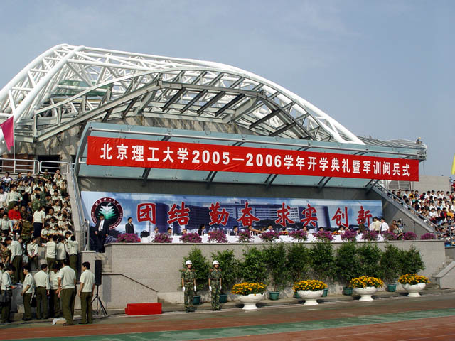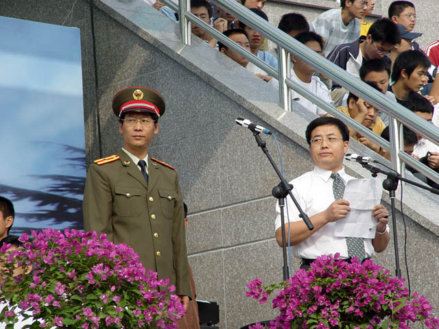 9月16日上午,我校在东操场隆重举行2005届学生开学典礼暨军训阅兵式。