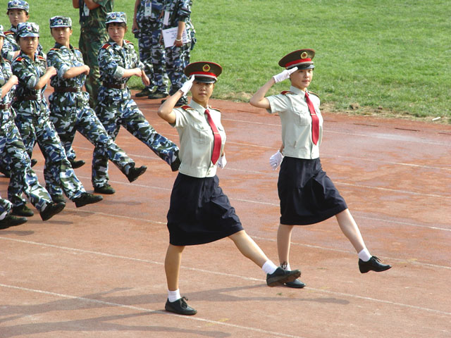 柔中带刚的女兵方阵。