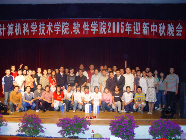 一年一度中秋节,明月千里寄相思。2005年9月18日晚上,计算机科学技术学院、软件学院在中教一层报告厅举办了05级新生中秋晚会。学院分党委书记王树武、院长付梦印、副书记副院长肖文英、副院长陈朔鹰、副院长丁刚毅以及所有辅导员、新生班主任与全体2005级新生、部分新生家长欢聚一堂,共度中秋佳节。