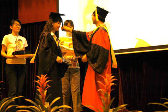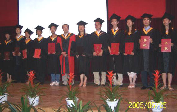 在毕业典礼上,副院长刘颖老师、杨荣杰老师、曹传宝老师和吕广庶教授为我院2005届本科毕业生授予了学位。整个会场洋溢着喜庆的气氛。