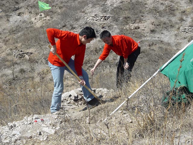 4月3日上午,我校近200名教职员工集体来到密云县太师屯山区植树造林。