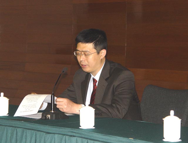 学会秘书长、我校保卫处长李汉军在做财务工作报告。