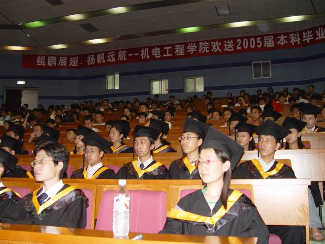 2005年6月28日,是一个令机电学院2001级全体同学终生难忘的日子,2005届本科生毕业典礼暨表彰大会在中心教学楼一层报告厅隆重举行。这既是对同学们圆满地结束四年大学生活,即将奔赴工作岗位的欢送会,也是学院对同学们完成学业,学有所成的庆祝会。