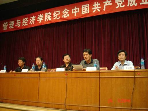 2005年6月24日下午两点,管理与经济学院在中教一层报告厅召开了管理与经济学院纪念中国共产党成立84周年暨表彰大会。会议由学院党委副书记副院长汪本聪同志主持,校工会主席赵显利同志、学院院长李金林同志、院党委书记李波同志、副院长吴祈宗同志及全院500余名党员出席了此次会议。大会总结了学院开展保持共产党员先进性教育活动以来所取得的成果,并对2004至2005年涌现出的先进党员及先进党支部进行了表彰,校工会主席赵显利同志代表校党委书记焦文俊作了发言。