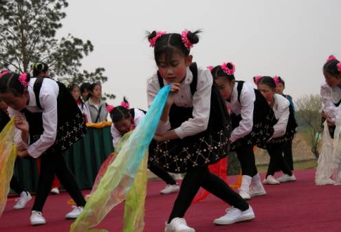国华希望小学的孩子们表演舞蹈