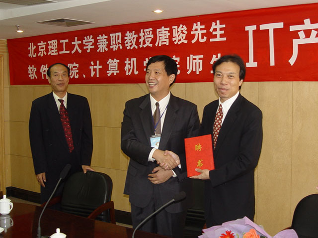 2005年9月12日上午,计算机科学技术学院、软件学院邀请前微软中国总裁、盛大公司总经理、我校兼职教授唐骏先生来我校国际教育交流中心作“IT产业职业发展研讨会”,并且正式聘任唐骏教授为理工大学软件学院高级顾问。