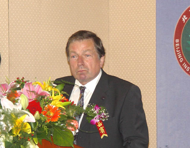 柏林工业大学Peter Noll教授讲话,对两校的发展合作大加赞赏,并回忆了匡镜明校长在柏林工业大学学习期间的往事