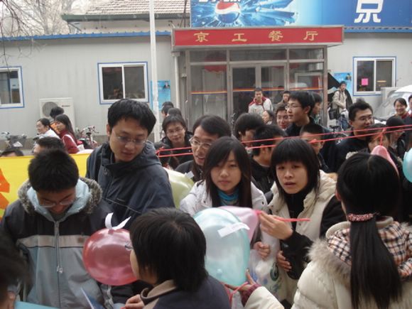 活动当天,工作人员将贴有问题的气球悬挂起来,参加活动的同学摘下要回答的问题的气球。这种形式吸引来了许多同学,他们纷纷涌到气球边,一边看问题一边阅读宣传板上的历史资料。