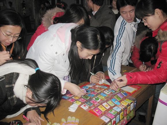活动从早上9点开始布置,10点正式开始,一直到晚上6点半,参加的同学骆绎不绝,我们部员辛苦一天后终于露出温馨的笑容。