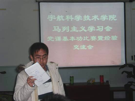 12月27日晚,宇航学院马列主义学习会党课基本功比赛暨经验交流会在三号楼一层会议室召开,参加交流会的有宇航科学技术学院马列主义学习会主席团,各部部长,初级部高级部干事。分团委范鹰老师、陈哲老师也出席了会议并作总结。