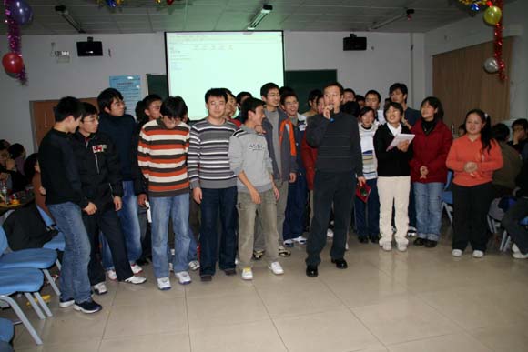 项院长和郝副院长代表学院领导,发表了热情洋溢的讲话,祝贺工业工程系的成立,祝贺大家元旦快乐,并期望同学们能在新的一年取得更大的成绩。