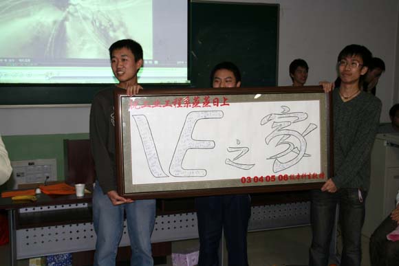 最后,全系近200名学生送上了一份自己的礼物。那就是写有“IE之家”的牌匾,空心字体的笔划内签满了全体本科生的名字,也有“祝工业工程系蒸蒸日上”的美好祝福。同学们在向老师表明自己的决心:我们要把工业工程当成自己的家,把她建设得更好。