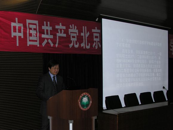 校常务副校长李志祥同志在会上作了重要讲话,他充分肯定了管理与经济学院分党委在过去的四年中取得的成绩。他希望新的一届管理与经济学院分党委要进一步推进党的先进性建设,充分发挥党组织和党员的先锋模范作用,搞好“三优一提”工程,为构建社会主义和谐校园做出贡献。