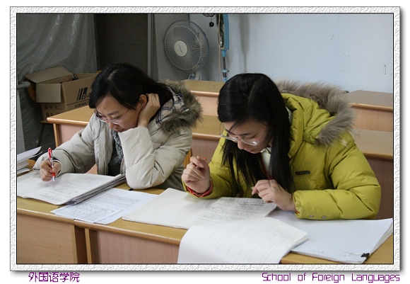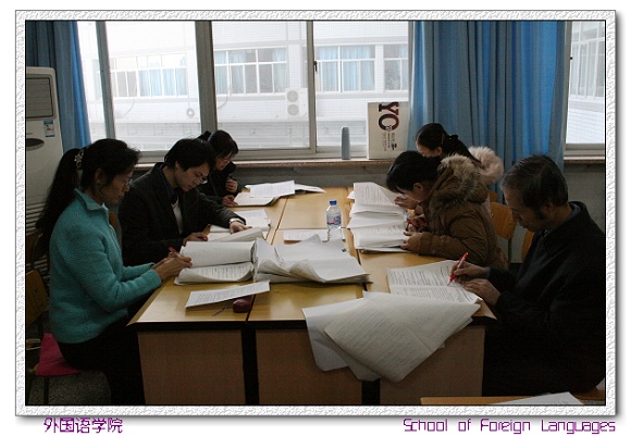 考试结束后,大学英语部的老师都集中在办公室,马上展开集中阅卷工作。她们不顾辛劳,为了让学生及时知道考试成绩。
