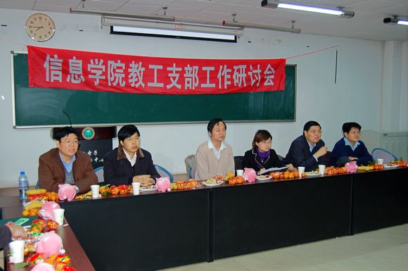 2007年1月18日下午,信息学院教工支部工作研讨会在四号楼244胜利召开,学校党委组织部副部长李跃华老师,学院党委书记薛唯老师,常务副书记张笈老师,常务副院长王军政老师,副院长汪渤老师,副院长安建平老师以及信息学院全体教工支部书记出席了本次会议。