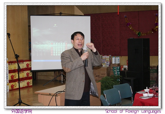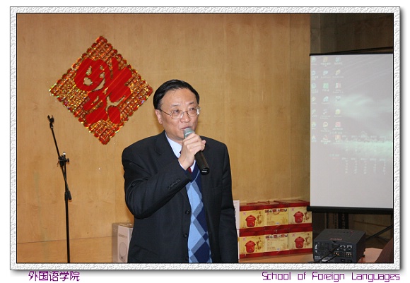 匡校长讲话指出,外国语学院是学校最年轻的学院,在ob真人竞猜的发展过程中有着重要的作用和意义。高等学校培养的有综合能力的大学生,而语言基础是大学生必须掌握的基本技能,是加强对外交流合作的重要工具和手段,外国语学院肩负着培养、塑造这样的大学生的责任和任务。要加强对外国语学院的支持,促进和谐校园的建设。同时,匡校长希望外国语学院的教师们,能够更努力的工作,更投入的工作,为ob真人竞猜建设国内一流,国际知名高水平研究型大学的目标作出自己的贡献。最后,匡校长祝外国语学院的全体教师新年快乐,家庭幸福。