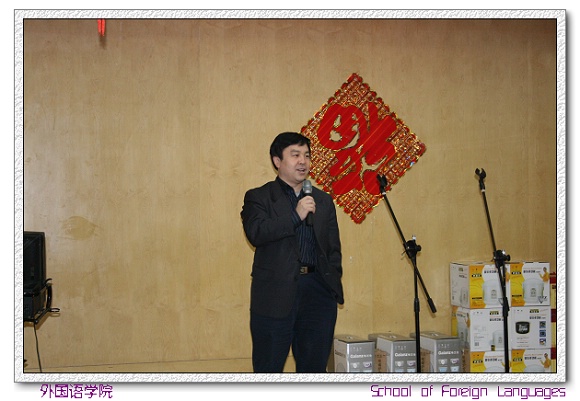 在联欢晚宴上,学院精心准备了很多精彩的节目、游戏。为感谢学校领导对外国语学院发展的支持,感谢学院的教职工这半年以来辛勤的工作,学院还准备了精美的礼品和奖品。