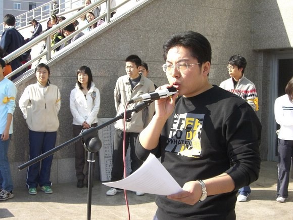 在庄严的升旗仪式之后,生命学院党总支书记李兰东老师为此次运动会致开幕词,并祝愿生命健儿们能够在此次大会上赛出风格,赛出水平。 06120601班丁凯同学和06110402马文韬分别作为运动员和裁判员代表发言,随后比赛正式开始。