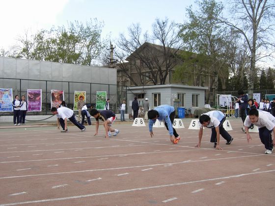 在紧张激烈的运动赛中,同学们本着“友谊第一,比赛第二”的原则,发扬着不怕苦,不怕累的精神,向着“更快、更高、更强”的目标努力着。