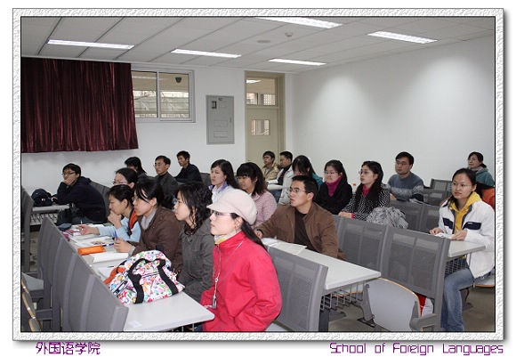 外国语学院院长吴树敬教授,副院长李京廉博士,英语语言文学学科带头人叶云屏教授,外国语言学及应用语言学学科带头人陈大明教授及外国语学院部分研究生、本科生参加了此次报告会。
