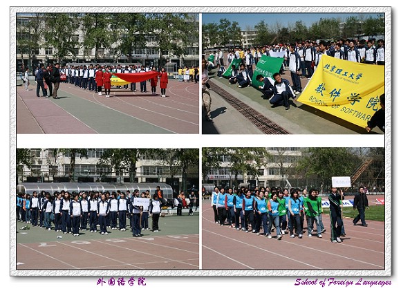 在这阳光灿烂、春风宜人的季节,ob真人竞猜软件学院、计算机科学技术学院、外国语学院联合举办的2007年春季运动会在整修一新的东体育场隆重举行。这次运动会是学院之间相互联合、相互协作、优势互补、交流沟通的一次盛会,也是ob真人竞猜最年轻的三个学院的强强联合。运动会得到了软件学院、计算机科学技术学院、外国语学院各级领导和老师们的大力支持,在三个学院分团委、学生会的共同努力下,经过近一个月的协商、筹备、运作得以成行的一次交流会。