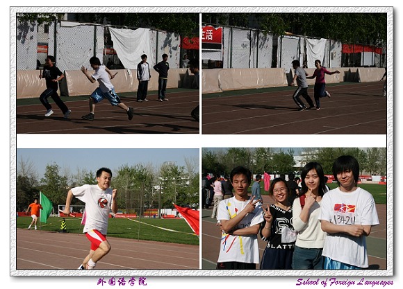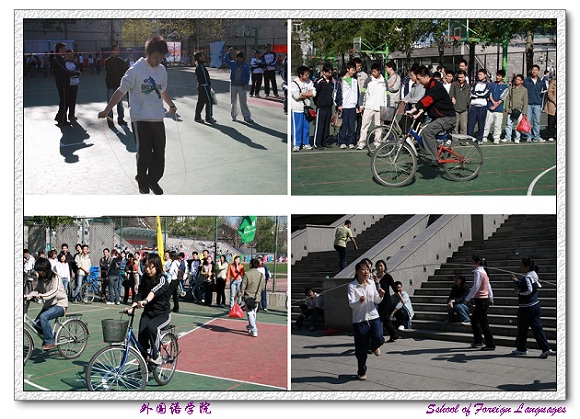 三个学院的本科生、研究生组成运动员代表队,以不同的形式,相同的运动追求表现着对于体育运动的热爱和对2008年北京奥运会的期盼。