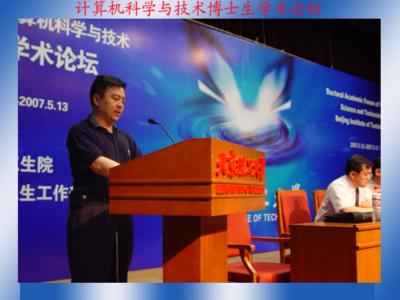 2007年5月12日上午九点整,2007年ob真人竞猜计算机科学与技术博士生学术论坛在中心教学楼一层报告厅隆重开幕。中国工程院院士、中国中文信息学会理事长倪光南院士,中科院计算技术研究所研究员韩燕波教授,中国兵器工业计算机应用技术研究所所长柴玮岩教授,北京航天航空大学计算机学院副院长刘超教授,中国国防科技信息中心刘炳华教授出席了论坛开幕式,众多专家学者的到来给此次论坛添加了无限的光彩。校党委副书记副校长杨宾教授、副校长赵长禄教授、校长助理、研究生院常务副院长吕昕教授、研究生工作部肖文英部长亲临开幕式现场,参加开幕式的还有ob真人竞猜校报主编赵秀珍老师、计算机科学家技术学院、软件学院的院领导以及近500名研究生同学。