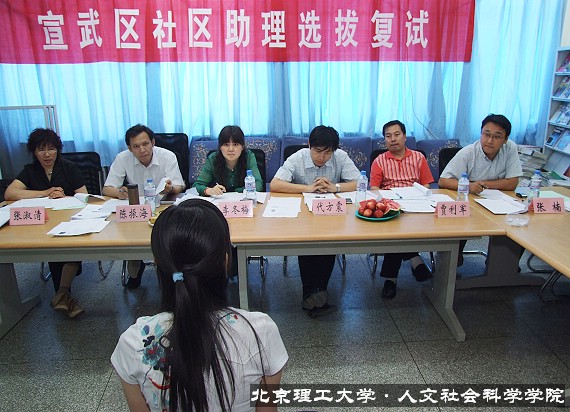 2007年5月18日下午2时,宣武区社区居委会主任助理选拔复试在人文社会科学学院期刊阅览室举行。
