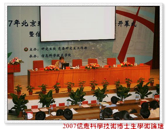 2007年5月16日星期三下午15:00在中心教学楼一层报告厅,“2007信息科学技术博士生学术论坛”在开幕式结束后随即举行了开坛报告,主讲人是我校名誉校长王越院士。参加此次论坛的百余名博士生聆听了此次报告,同时报告还吸引了很多研究生和本科生同学到现场聆听。