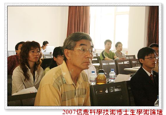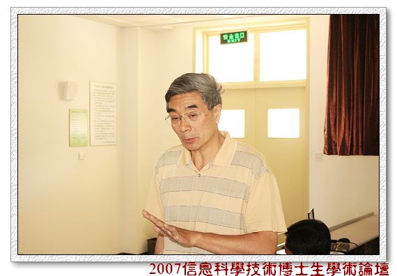 2007年5月19日上午2007信息科学技术博士生学术论坛光学工程分论坛在研究生楼208举行。参加分论坛的点评专家有倪国强教授,赵达尊教授和李艳秋教授。