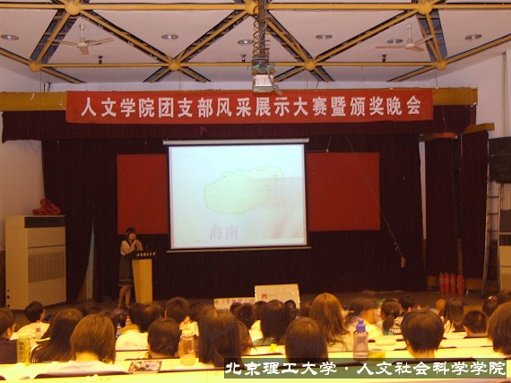 2007年5月20日晚7点,人文学院2006—2007年团支部风采展示大赛暨颁奖晚会在七号楼报告厅拉开帷幕。