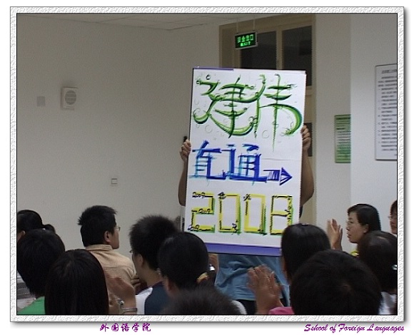 2007年5月30日晚7点,由研究生院和外语学院联合主办的研究生英语演讲比赛的预赛在研究生楼505和507教室成功举行。此次英语演讲比赛的主题是“Olympics in my heart”。