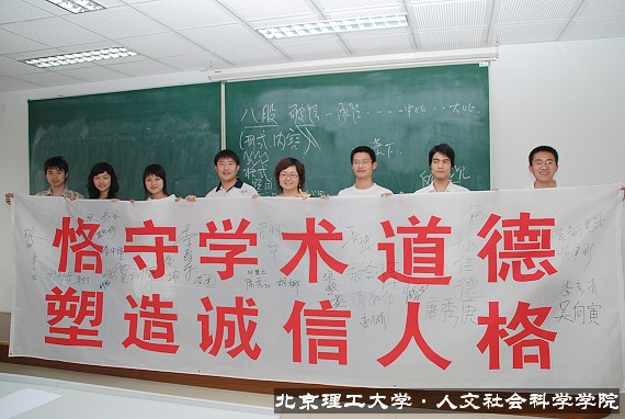 学术道德是每一位从事学术活动的人都应该遵守的基本活动准则。6月1日下午,首届人文学院研究生学术论坛闭幕式结束以后,我们举行了以“恪守学术道德、塑造诚信人格”为主题的学术道德自律签名活动,参加闭幕式的老师和同学一起积极参与了这次活动。