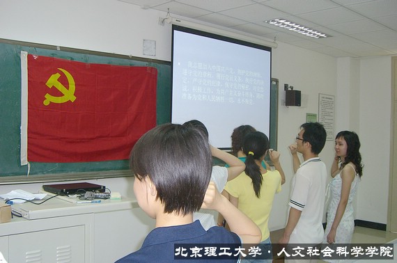 2007年6月7日下午2:00,人文学院06级研究生党员宣誓大会在研究生楼404教室正式召开。本次宣誓大会是响应学校党委的号召,由人文学院06级科技哲学支部、法理学支部和心理学支部共同倡议并组织举办的。三个支部的研究生党员共30余位参加了此次宣誓大会。人文学院顾秋润老师,贾效明老师应邀出席了本次大会。