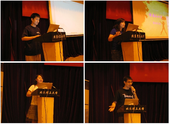 本次神州正方奖学金答辩会邀请到了许多国内知名论坛的版主和网络媒体的负责人:sohu互动中心主管夜无边、sohu网络编辑吴先生、中国青年报记者刘万永、中国日报网直播客负责人张鑫焱、牛博网CEO黄斌、北京博越世纪科技发展有限公司业务总监葛楠,他们与校内计算机协会创始人于忠民、知名管理员soff、校内论坛版主tryagain和过客之一一起组成了阵容强大的十人评审团。